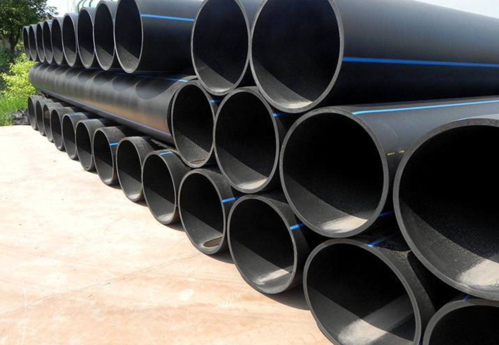 含有2-2.5%的均匀分布的碳黑的聚乙烯管道能够在室外露天存故或使用50年,不会因遭受紫外线银射而损害。